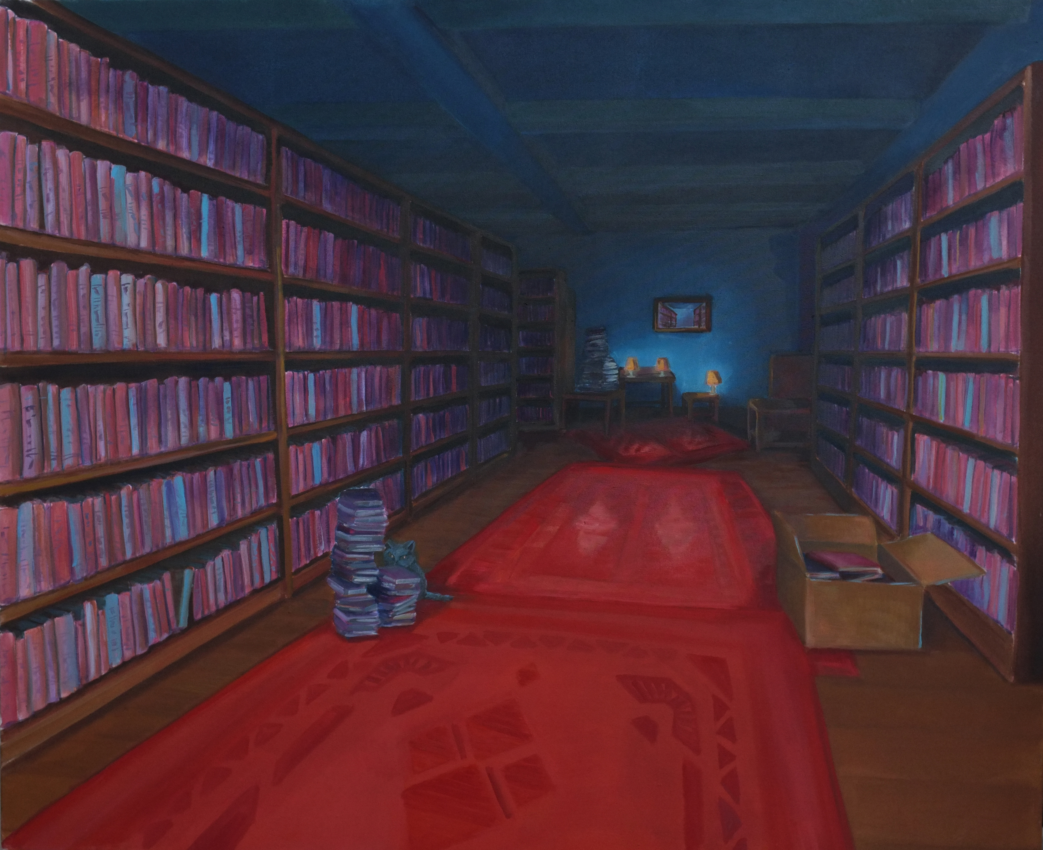 Behind the living room door, akrylová malba na plátně, 110×80 cm