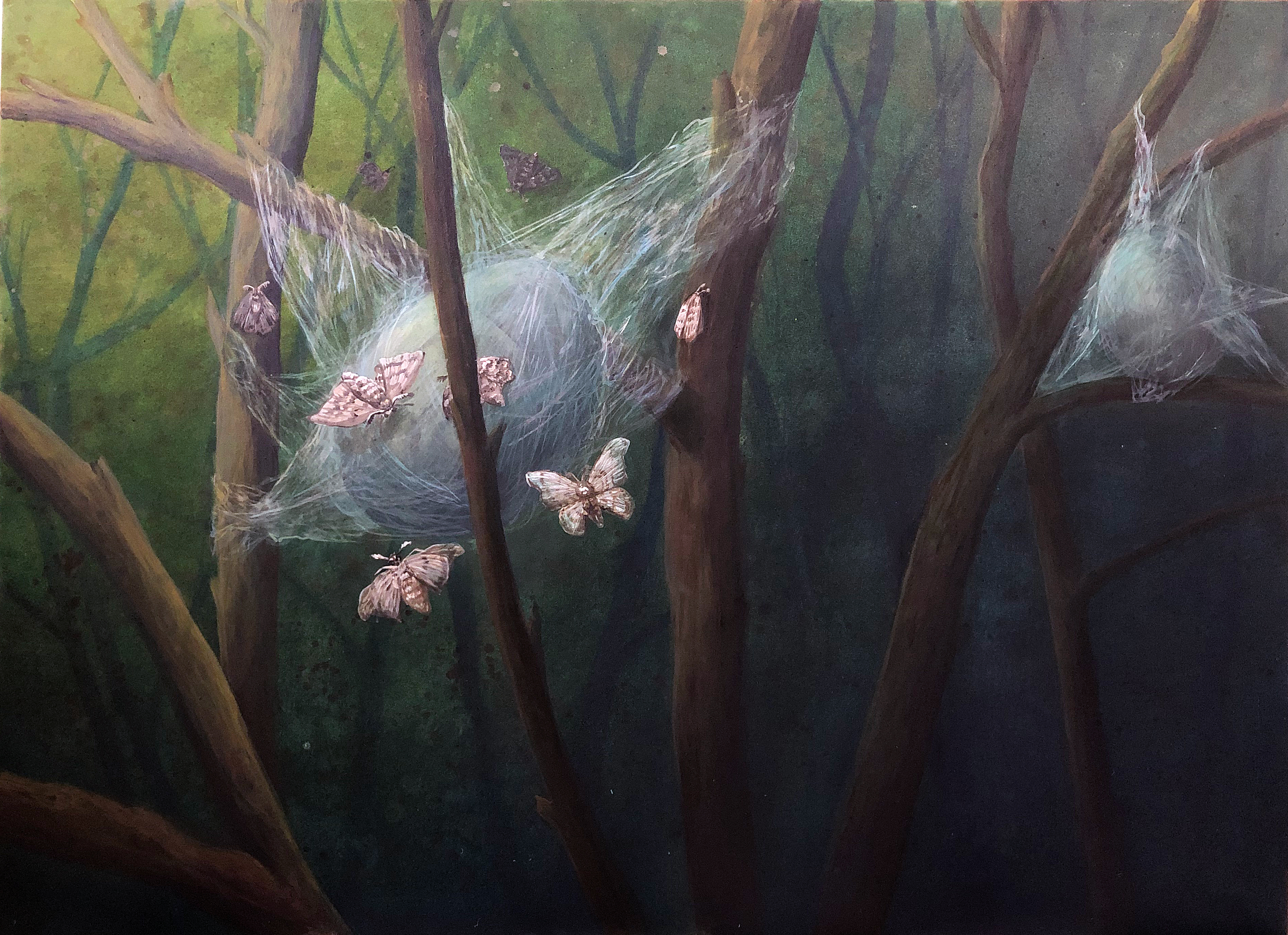 Giant cocoon , acrylic media ln canvas 90×120 cm