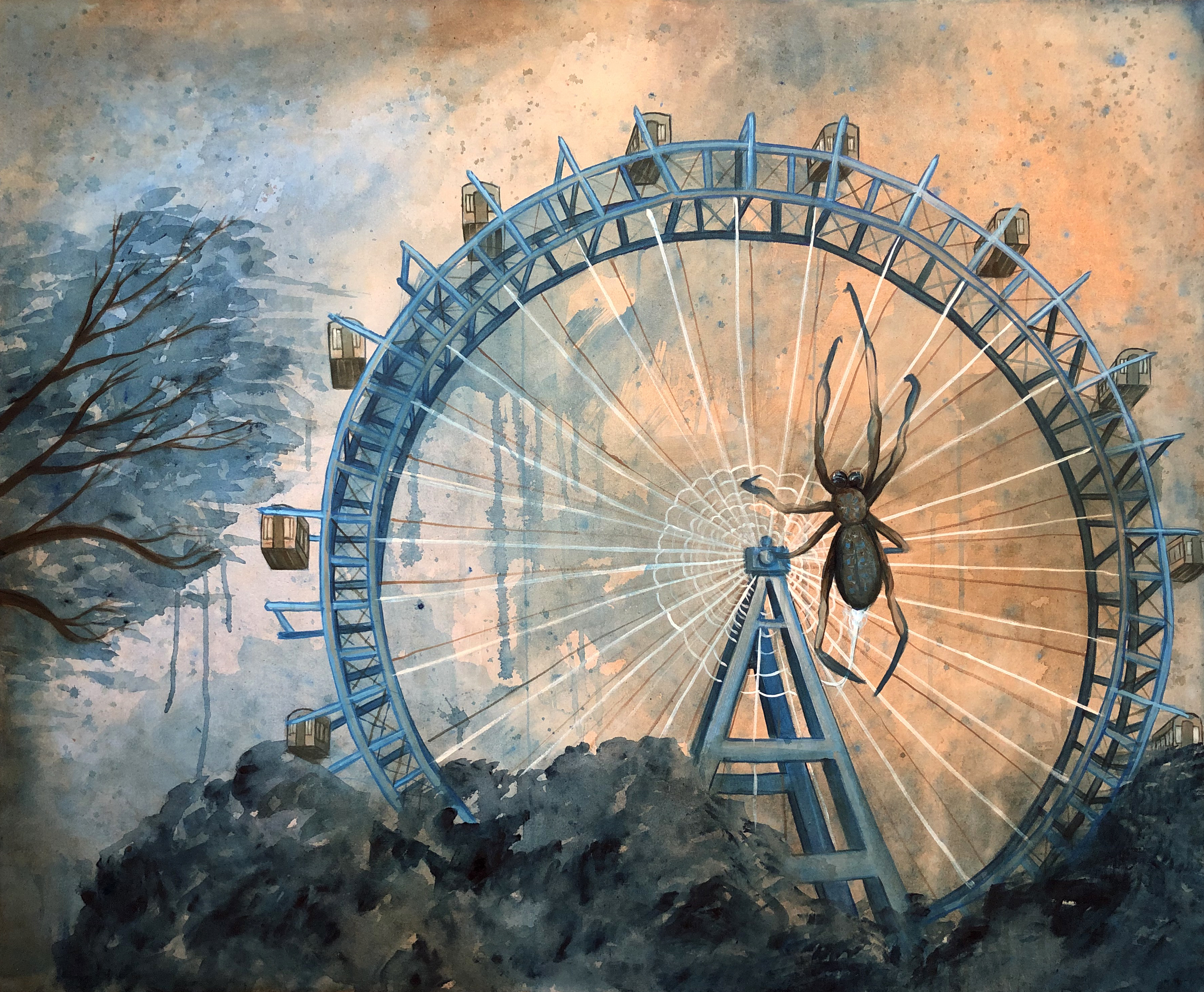 Ferris wheel, acrylic media on canvas 110×80 cm