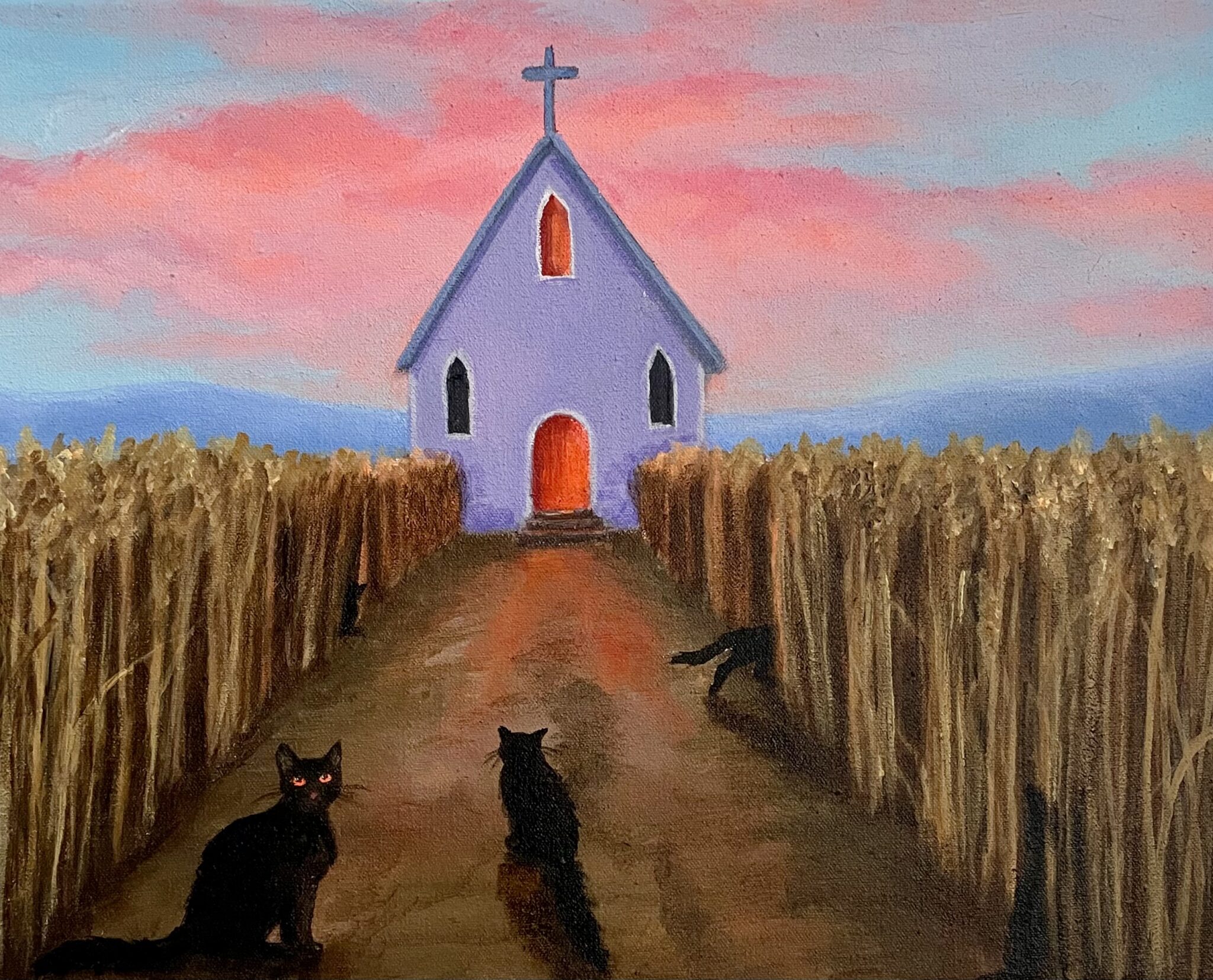 Black cat frenzy, acrylic media on canvas, 40×50 cm