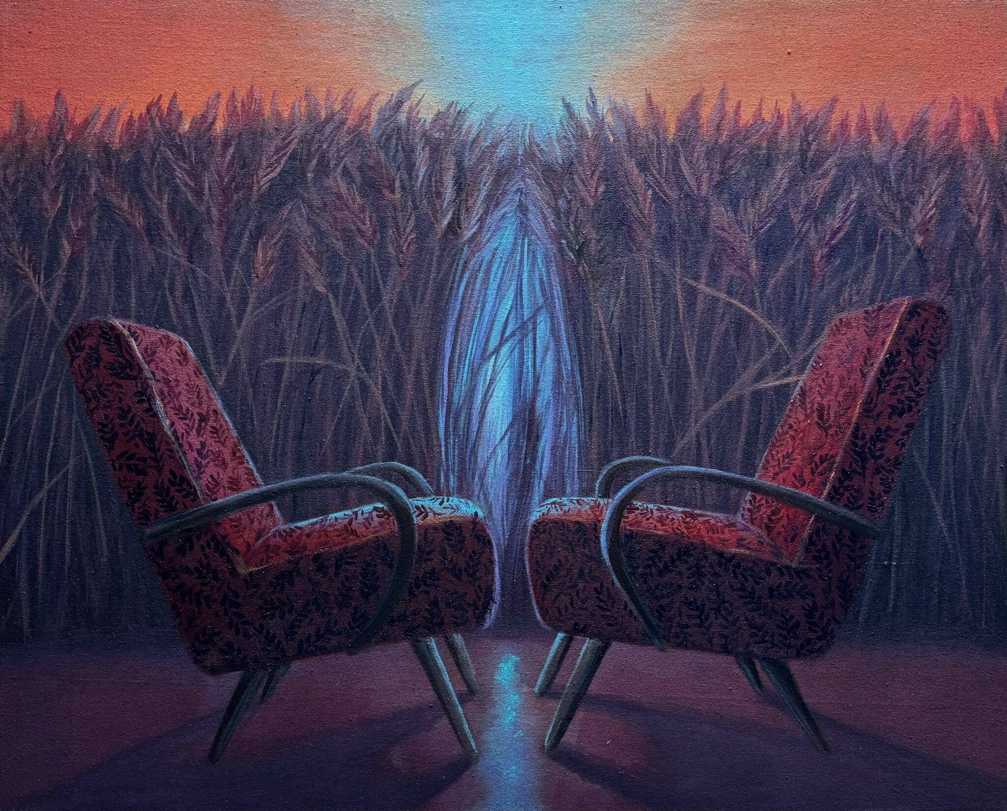 Storytime, acrylic on canvas 100×115 cm, 2024