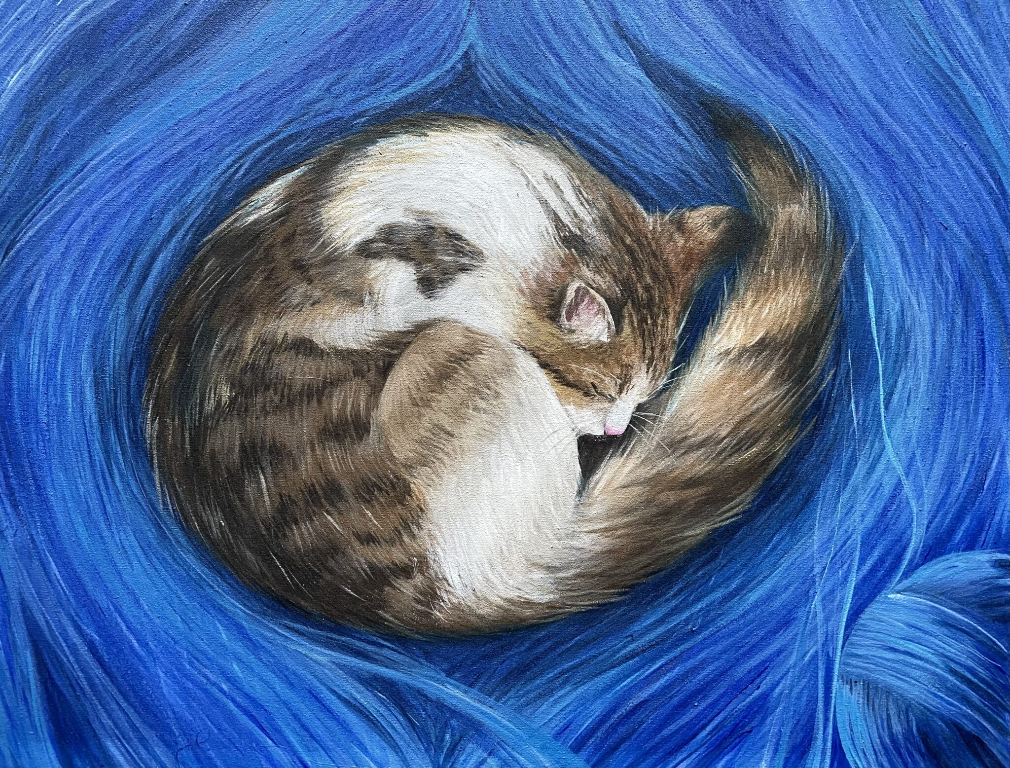 Cat dreaming, acrylic media on canvas, 40×50 cm