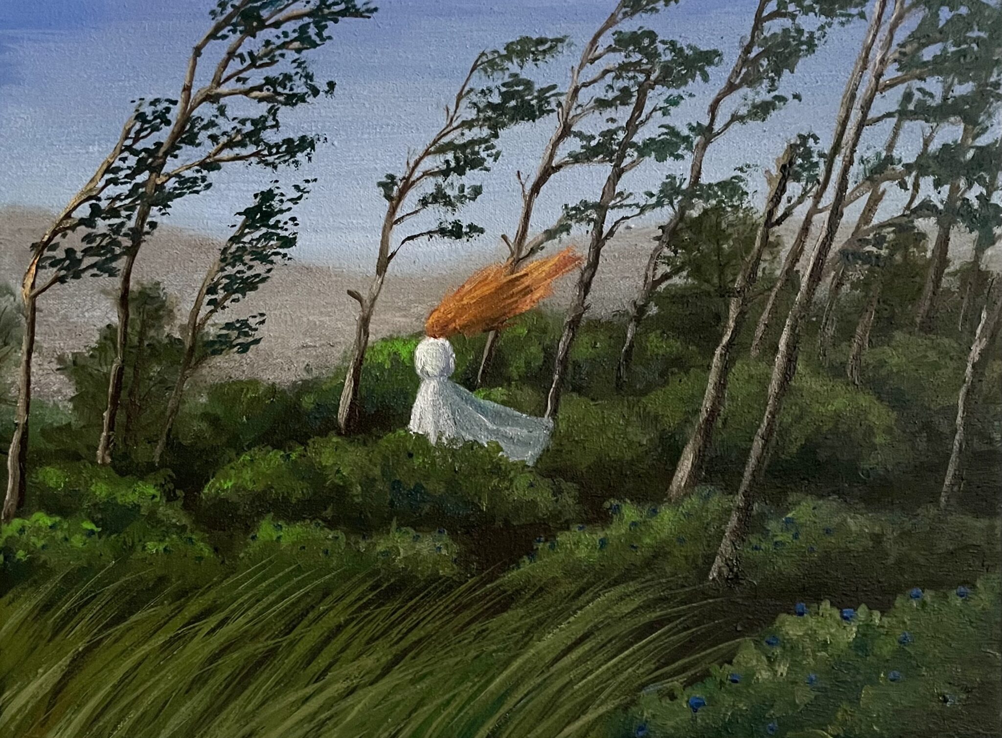 High on a windy hill, oil painting on canvas, 18×24 cm