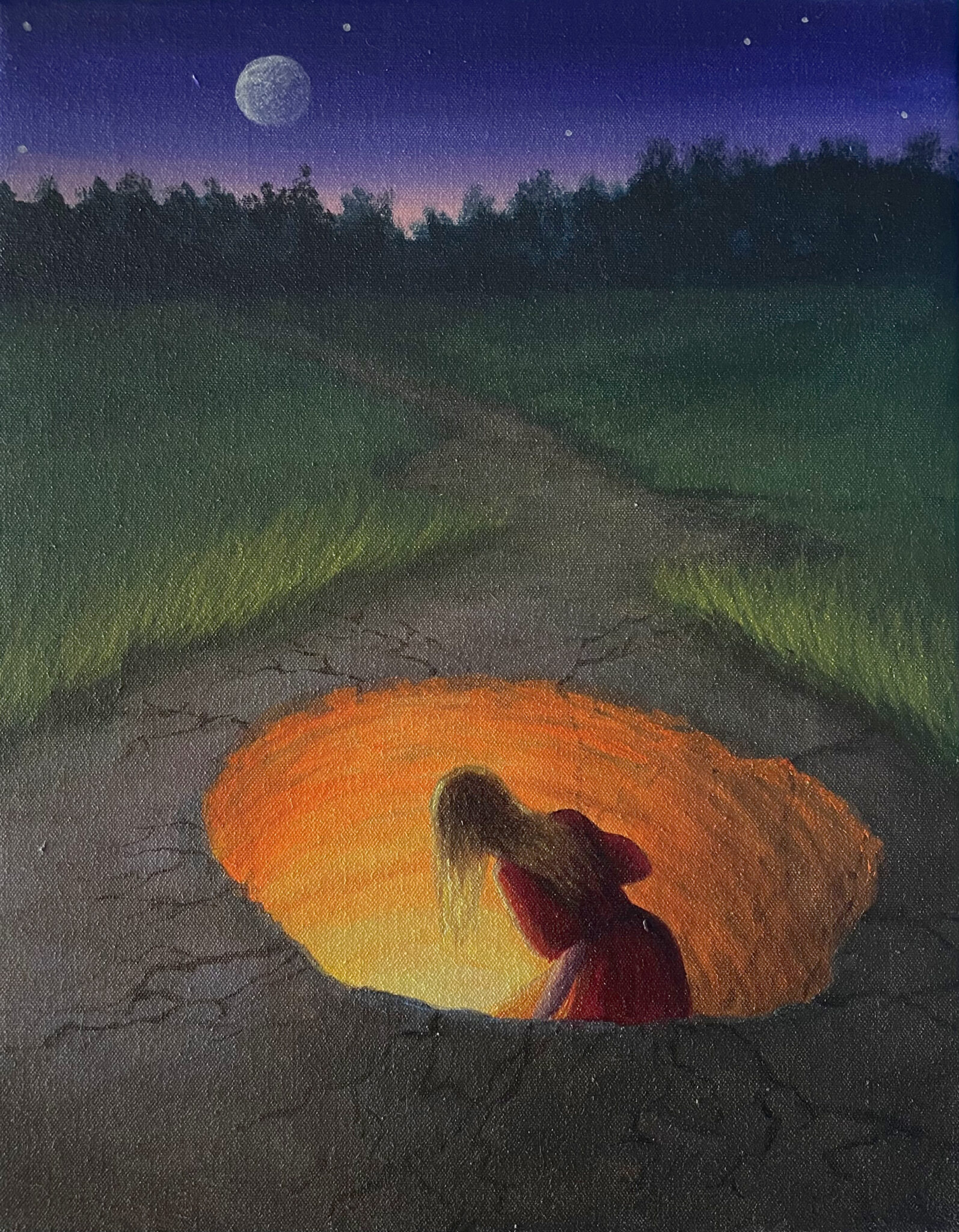 Catching fireflies, acrylic on canvas 75×100 cm