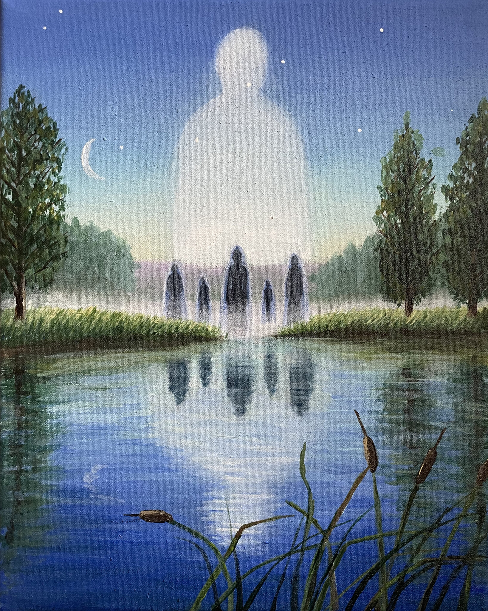 Spirits by the lake, acrylic on canvas 20×25 cm