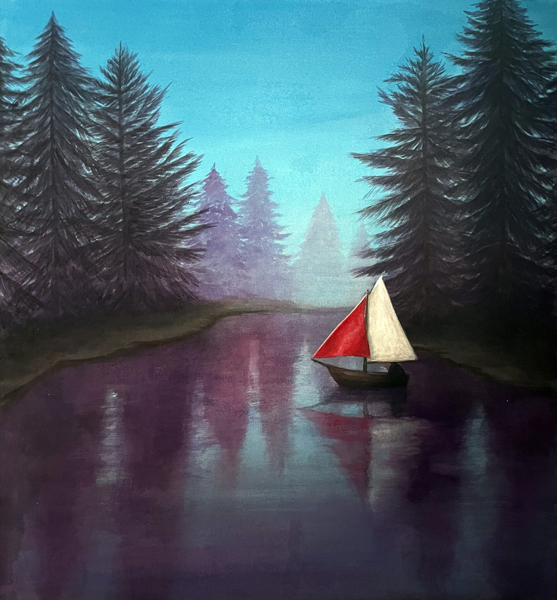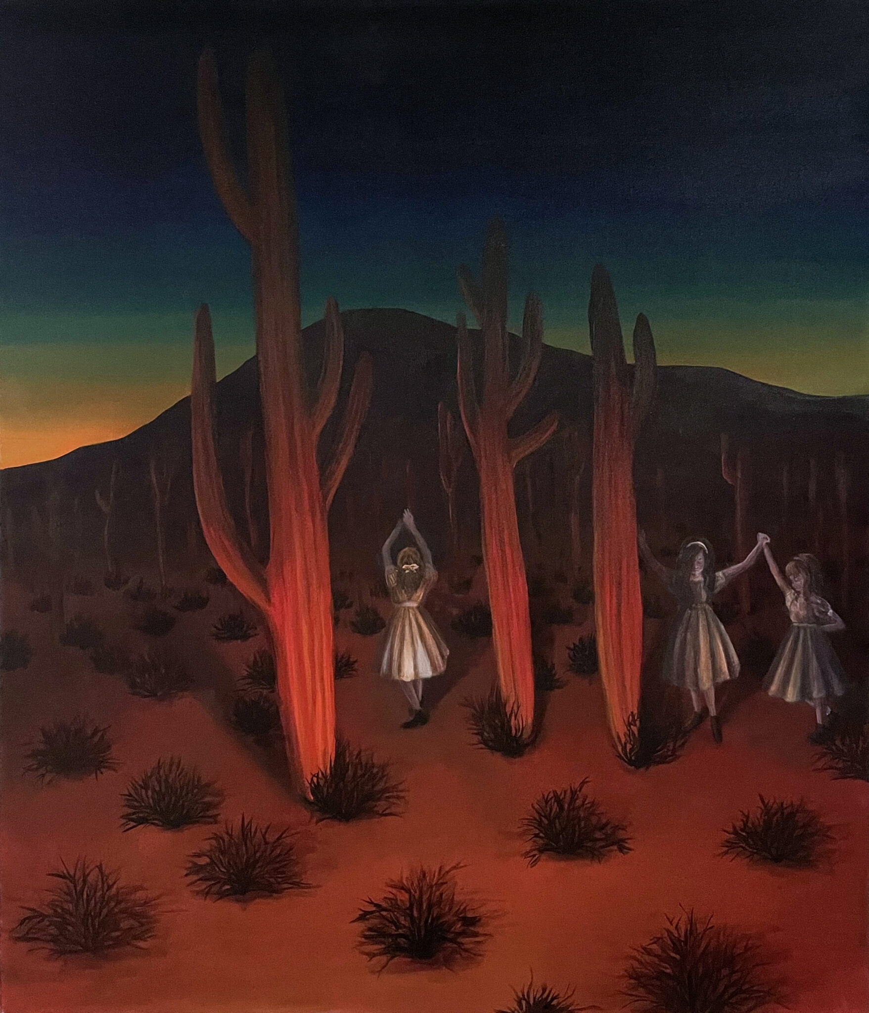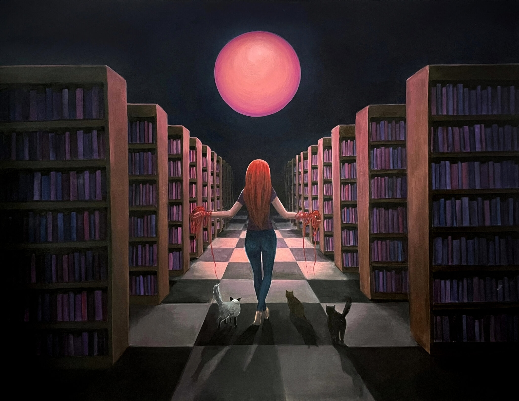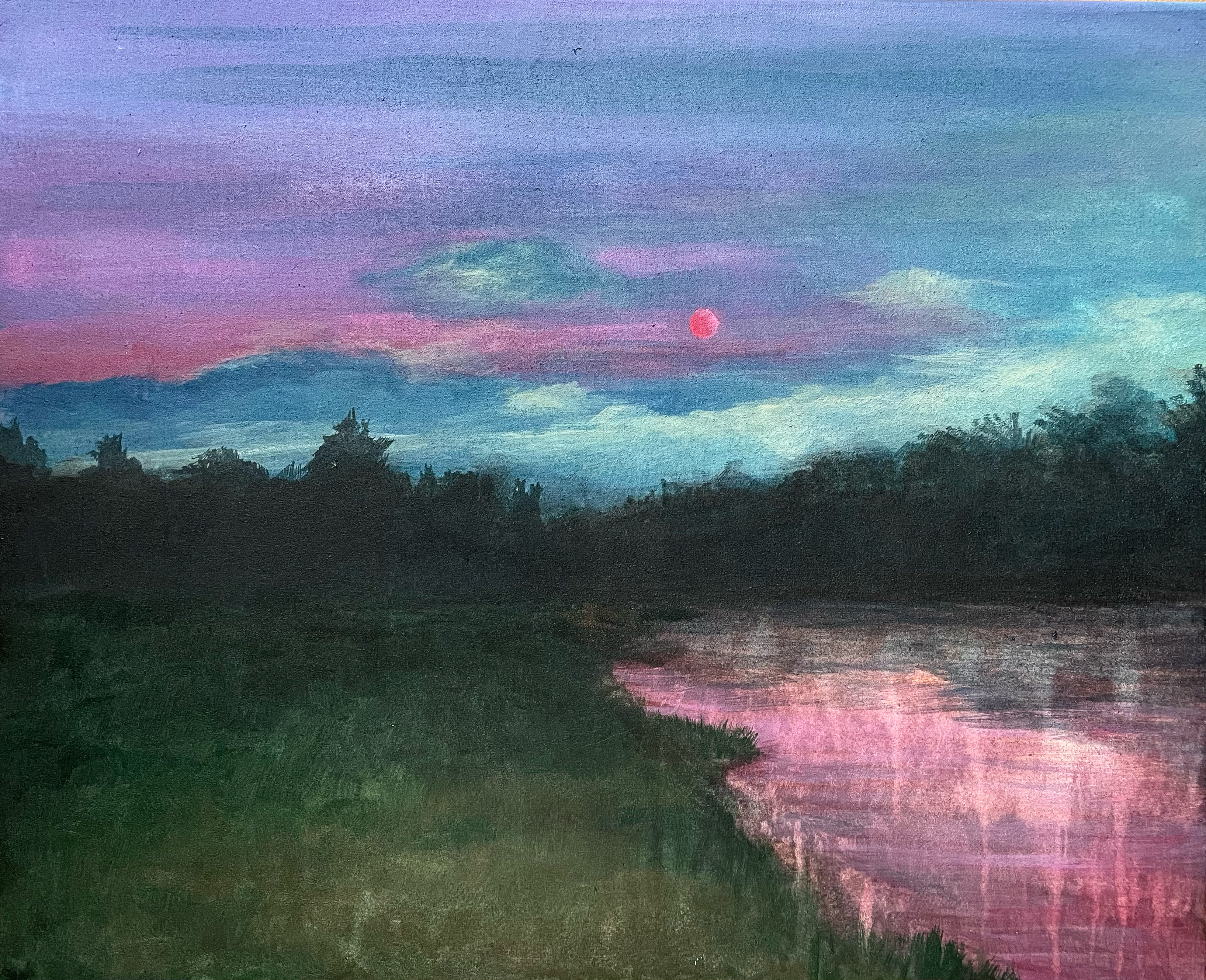 Under the blood moon, acrylic media on canvas 45×55 cm